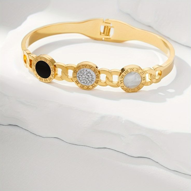 18k Round Black Roman Numerals Cuff Bracelet