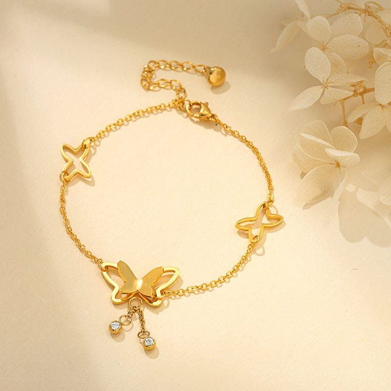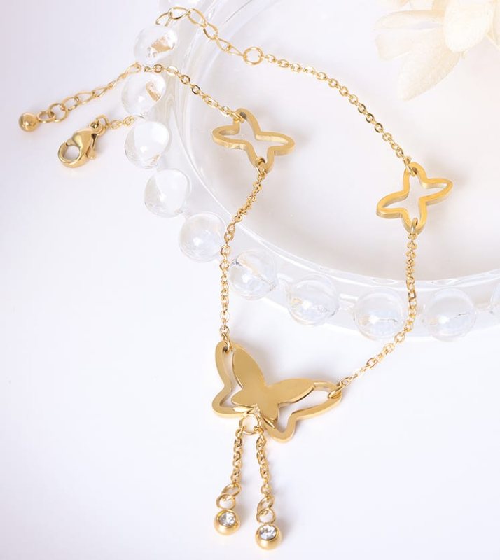 Stainless Steel Butterfly Zircon Tassel Anklet