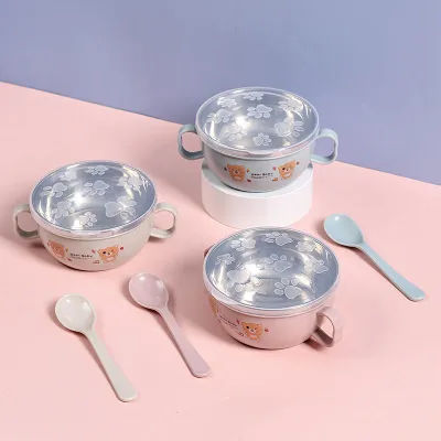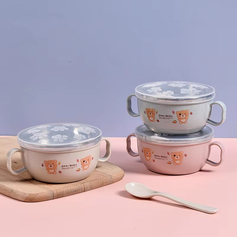 Stainless Steel Cartoon Bowl With Handles And Spoon