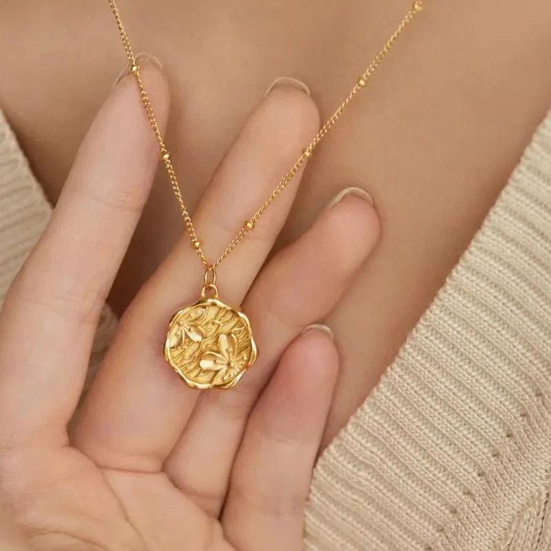 Stainless Steel Cherry Blossoms Flower Coin Necklace