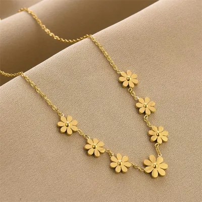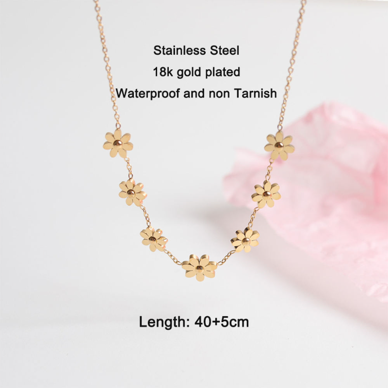 Stainless Steel Gold Plated Daisy Flower Pearl Beaded Necklace