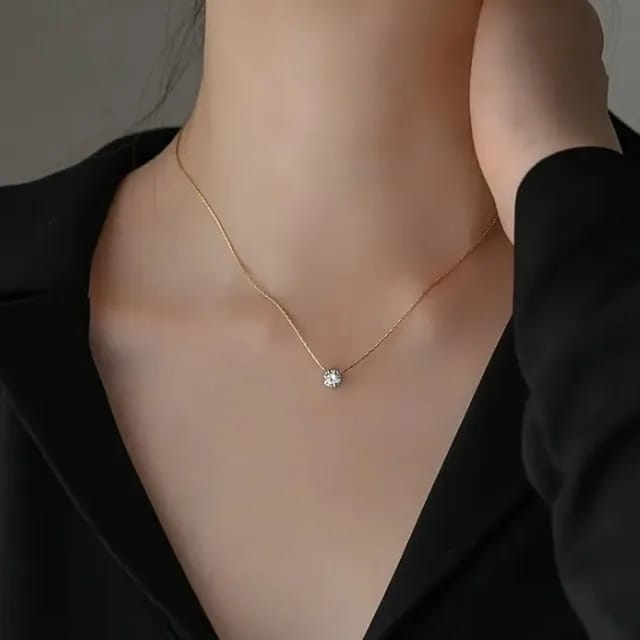 Gold Plated Stainless Steel Moon Star Zircon Necklace