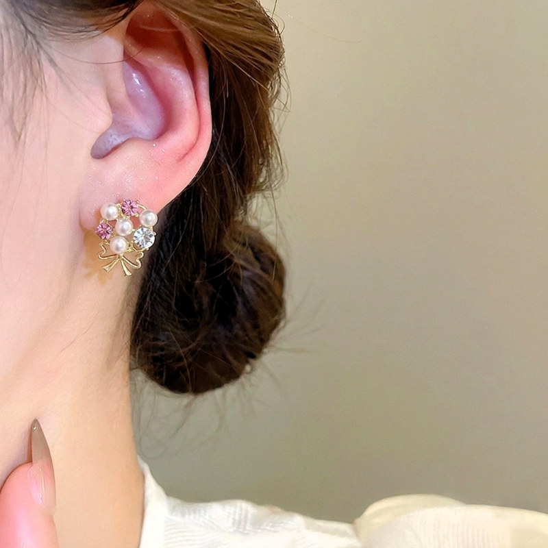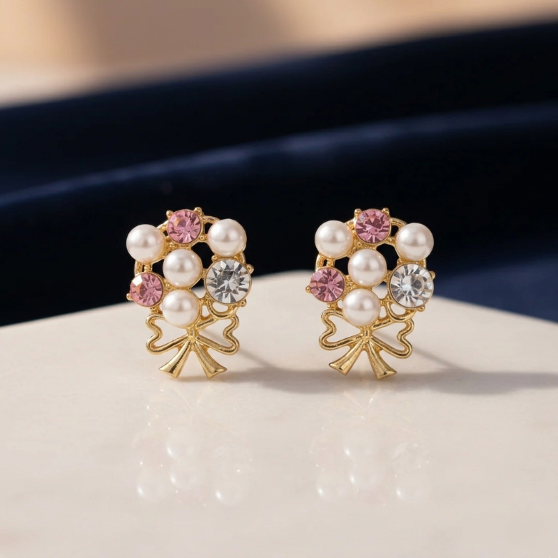 Geometric Cubic Zirconia & Pearl Inlay Stud Earrings